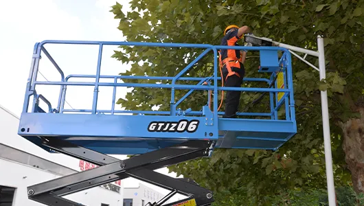 三轮车式剪叉升降机是一种非常灵活实用的高空作业设备,它将剪叉升降机构与三轮车底盘相结合,兼具了机动性与一定的作业高度